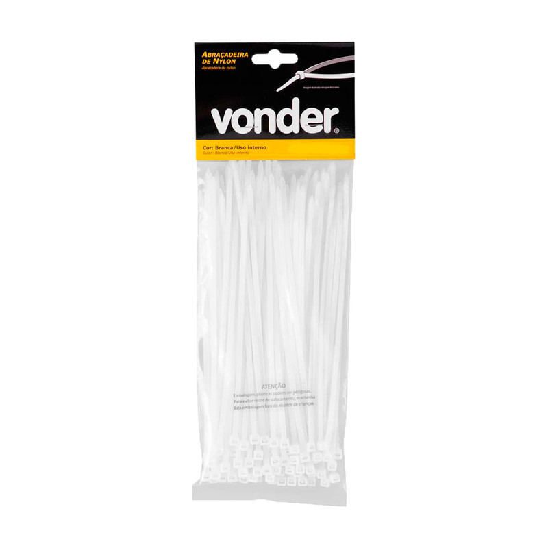 Indicada para fixar e organizar fios, cabos, entre outros. Também conhecida no mercado como: enforca gato, fita de nylon e abraçadeira plástica. A abraçadeira VONDER é indicada para uso interno e externo.