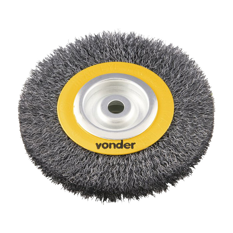Motoesmeril: Desenvolvida para ser usada com motoesmeris, ela é ideal para trabalhos pesados de limpeza e acabamento de peças metálicas em alta rotação.