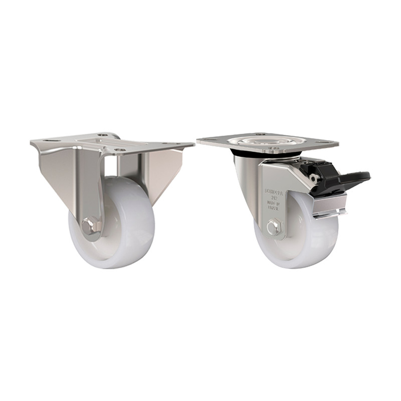 KIT 2 RODÍZIO FIXO GIRATÓRIO FREIO NYLON 312 NTT INOX 150KG