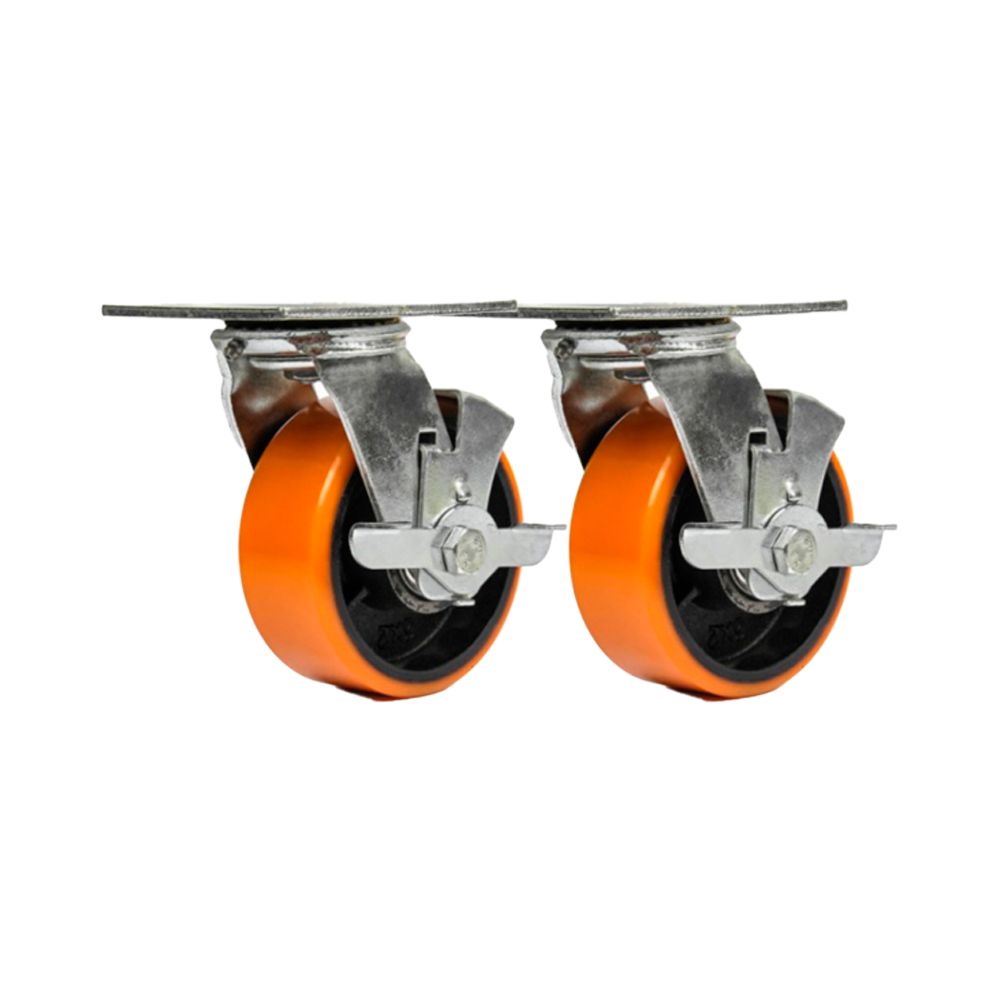 KIT 2 UN RODA RODÍZIO GIRATÓRIO FREIO POLIURETANO FERRO PU 6