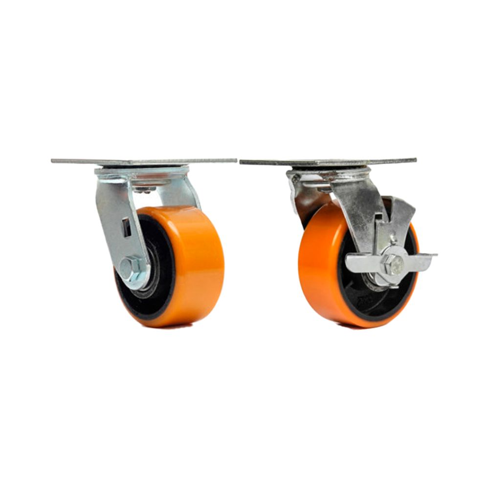 KIT 2 UN RODA RODÍZIO GIRATÓRIO FREIO POLIURETANO FERRO PU 6