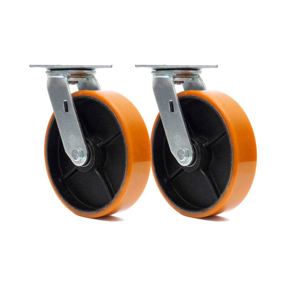 2 UNIDADES - RODA RODÍZIO POLIURETANO MOLDADO FERRO 8 POL GIRATÓRIO 400KG