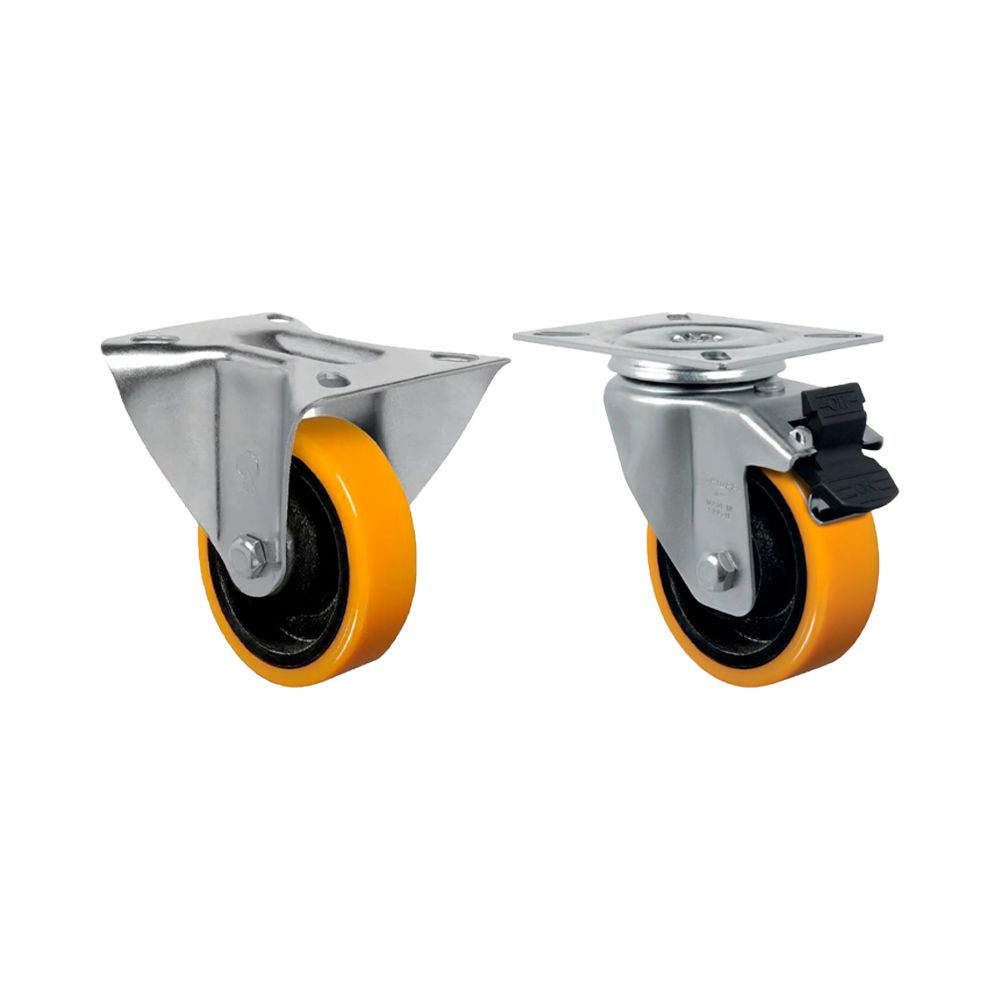 Produzida com revestimento em poliuretano moldado e núcleo em ferro fundido cinzento. Ideal para aplicações nos mais diversos tipos de superfícies e ambientes. Suporta altas cargas, protege o piso, necessita de menor esforço para movimentação, produz baixo nível de ruídos no deslocamento