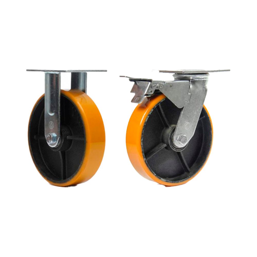 1 UNIDADE - RODA RODÍZIO POLIURETANO MOLDADO FERRO 8 POL GIRATÓRIO FREIO
