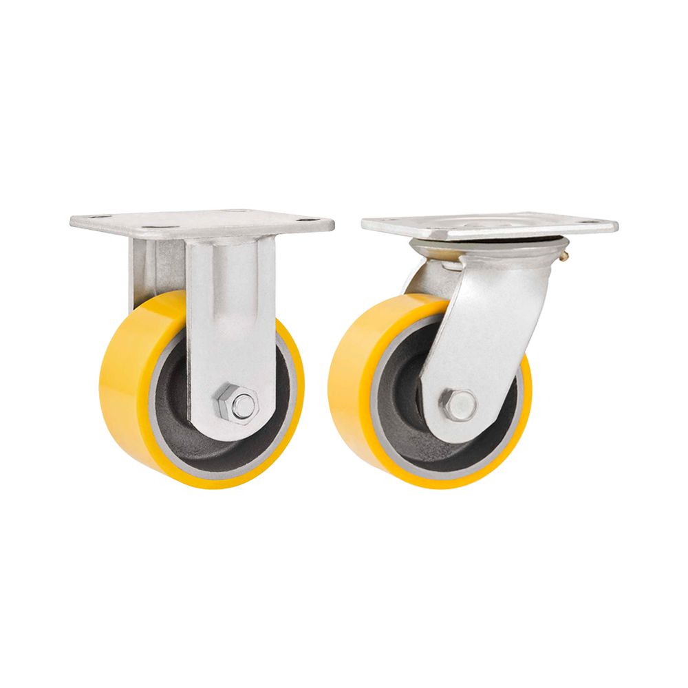 - 1 unidade Rodízio fixo industrial leve 8", de poliuretano e ferro fundido, amarelo, VONDER