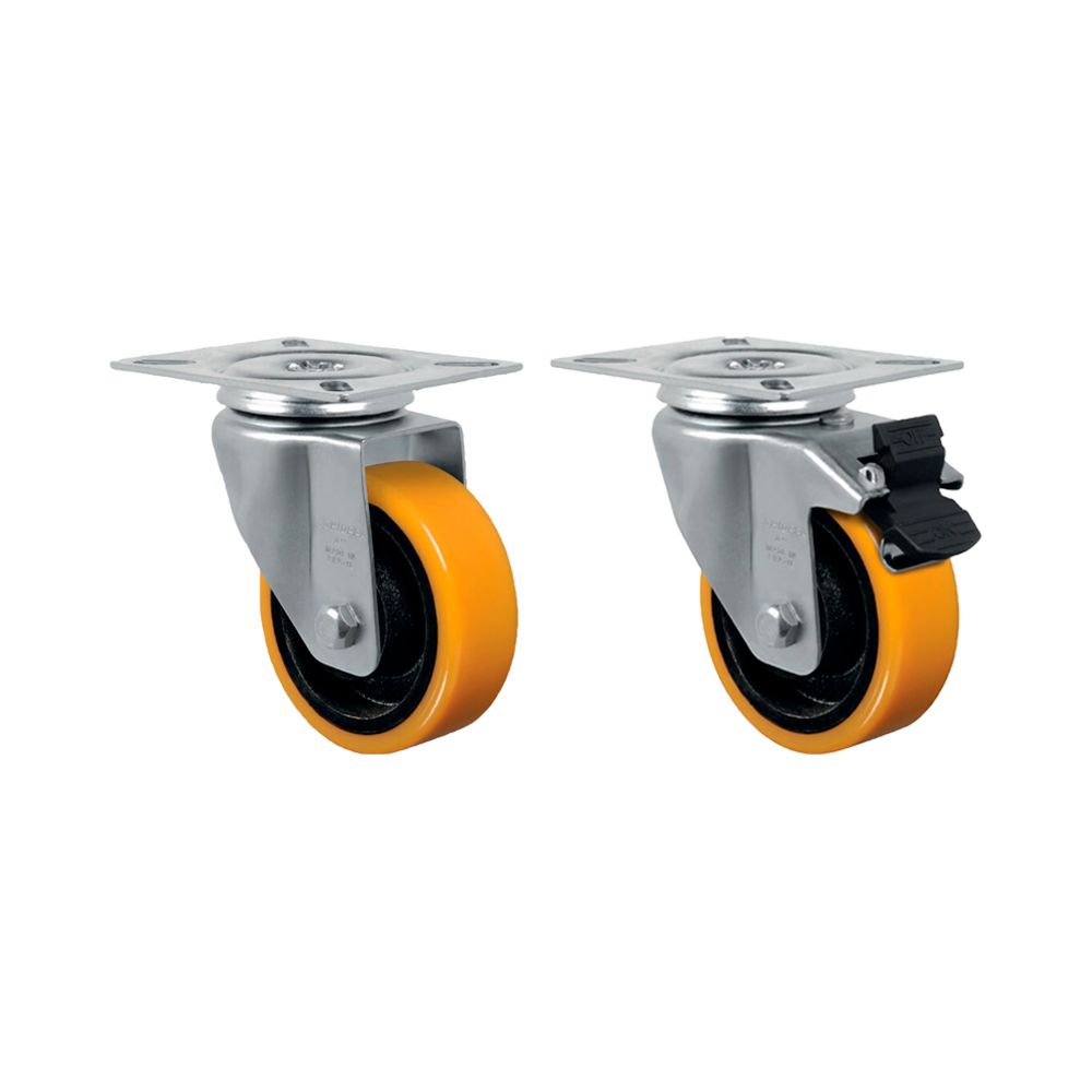 Produzida com revestimento em poliuretano moldado e núcleo em ferro fundido cinzento. Ideal para aplicações nos mais diversos tipos de superfícies e ambientes. Suporta altas cargas, protege o piso, necessita de menor esforço para movimentação, produz baixo nível de ruídos no deslocamento