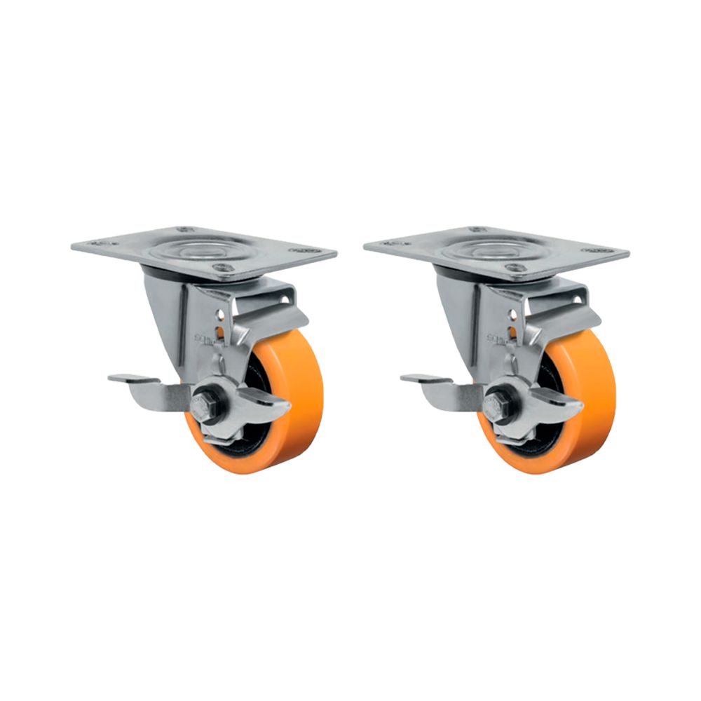 2 unidades - Rodízio Giratório com Freio 3 polegadas Schioppa 170kg poliuretano moldado