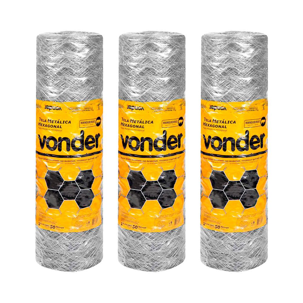 03 UN TELA MANGUEIRÃO HEXAGONAL VONDER 1,50X50M BWG 18