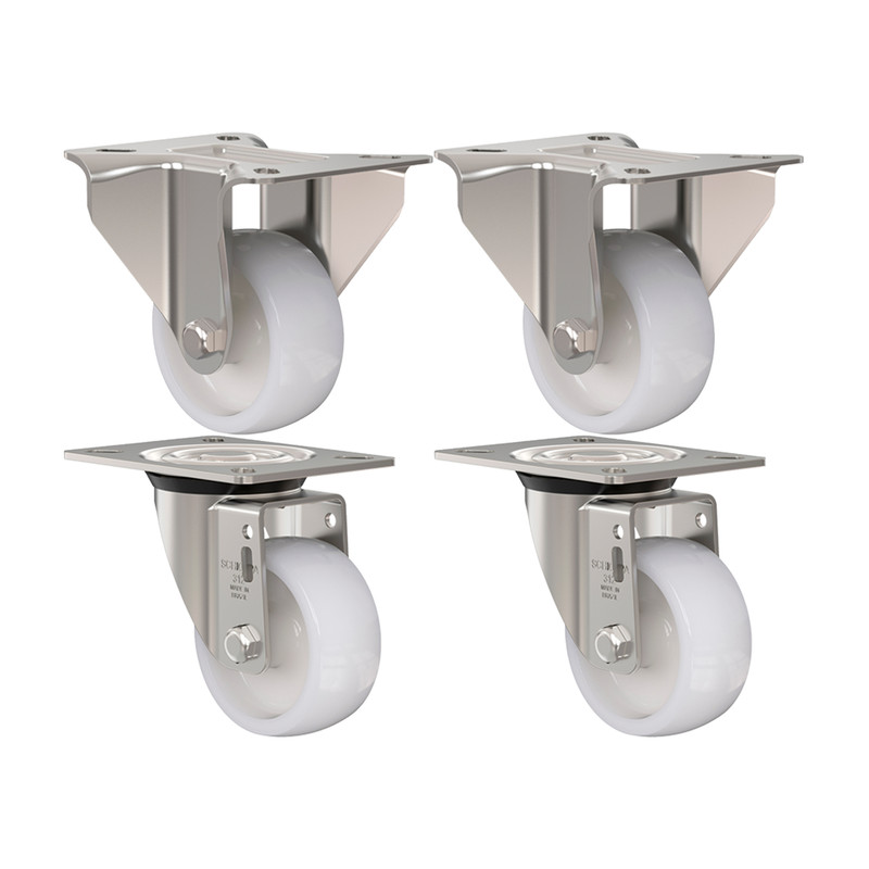 KIT 4 RODÍZIO FIXO GIRATÓRIO NYLON 312 NTT INOX 150KG