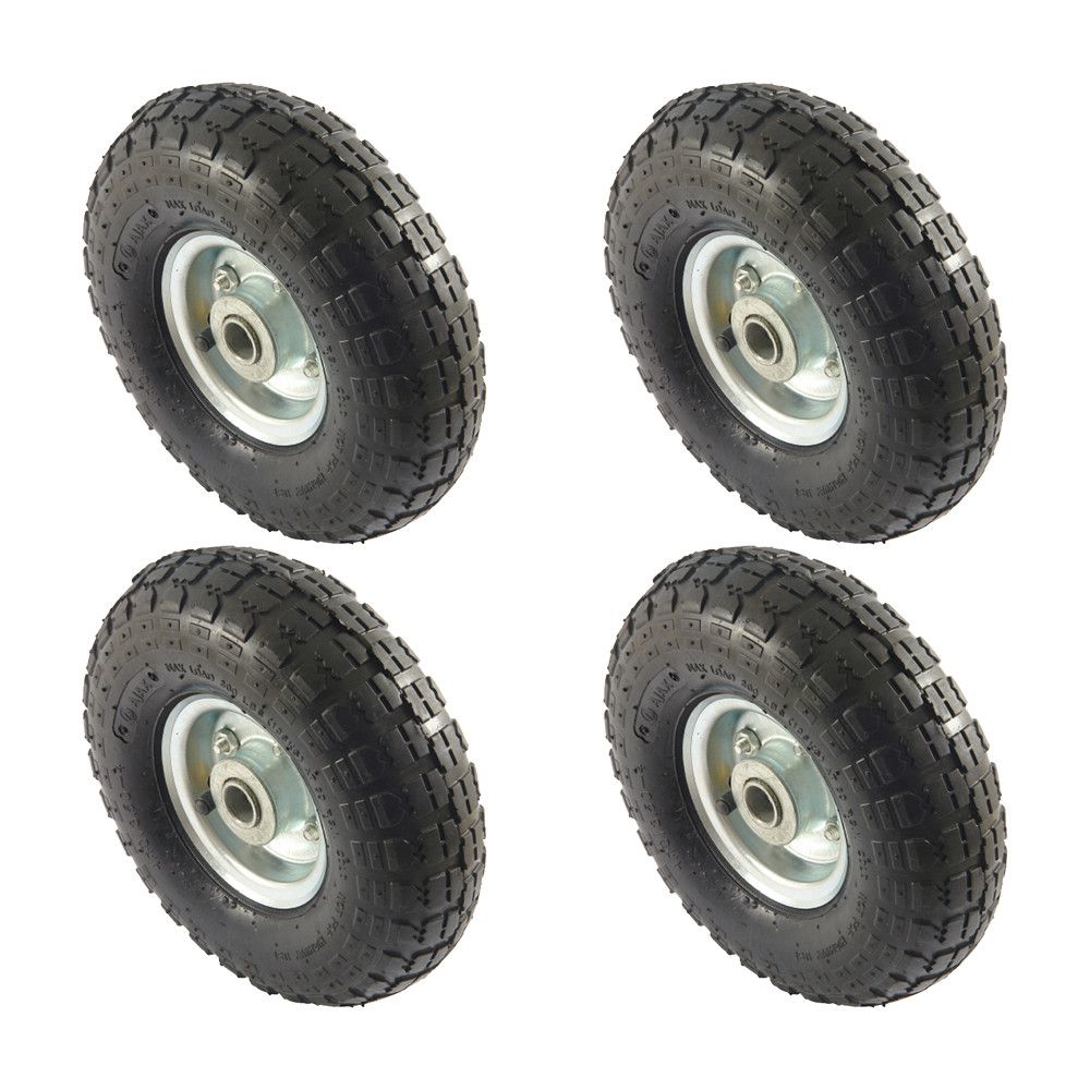 KIT 4 UNIDADES RODAS PNEUMÁTICAS 3.50-4 ROLAMENTADA EIXO 3/4” 4 LONAS 150KG