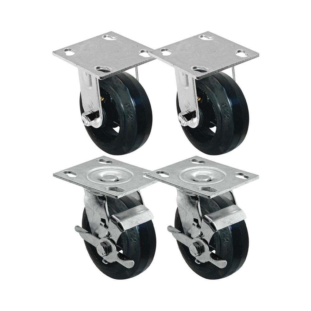 2 UNIDADES - RODA RODÍZIO BORRACHA MOLDADA 4 POL GIRATÓRIO FREIO 150KG