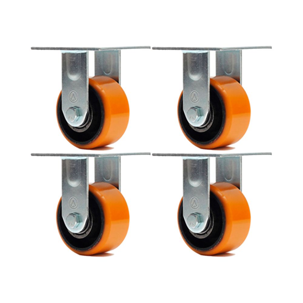 4 UNIDADES - RODA RODÍZIO POLIURETANO MOLDADO FERRO PU 6 POL FIXO 300KG