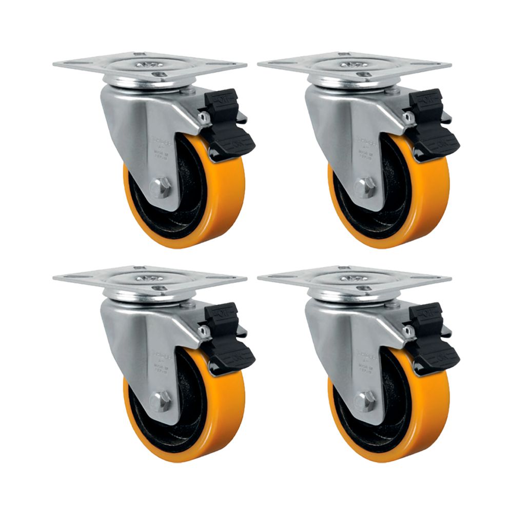 4 unidades - Rodízio Giratório com Freio 4 polegadas Schioppa 300kg poliuretano moldado