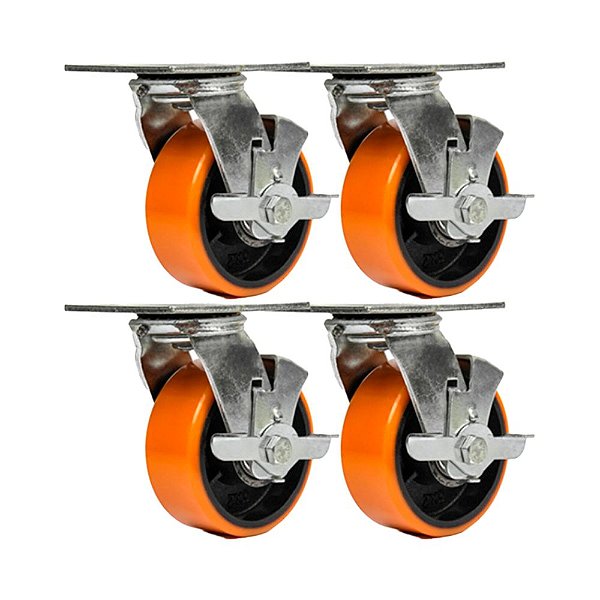 4 UNIDADES - RODA RODÍZIO POLIURETANO MOLDADO FERRO 6 POL GIRATÓRIO FREIO