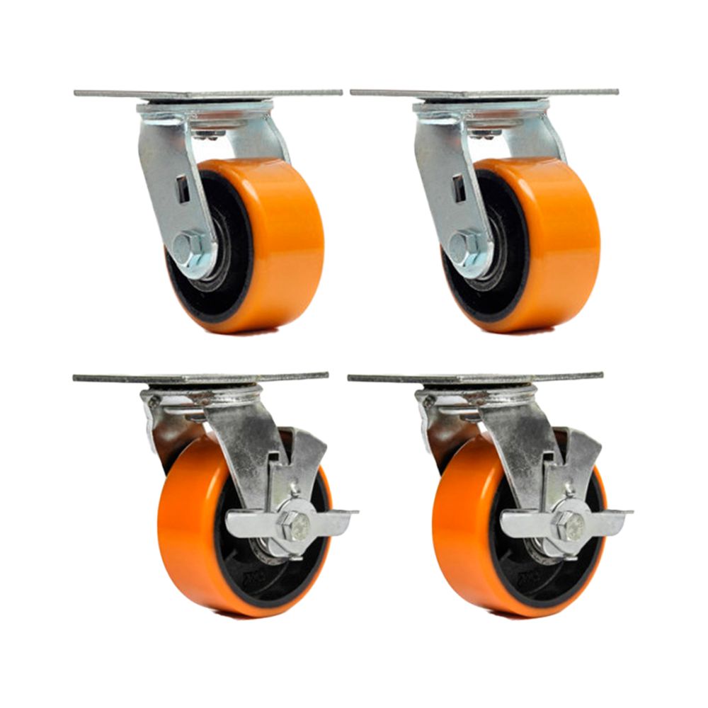 2 UNIDADES - RODA RODÍZIO POLIURETANO MOLDADO FERRO 6 POL GIRATÓRIO FREIO
