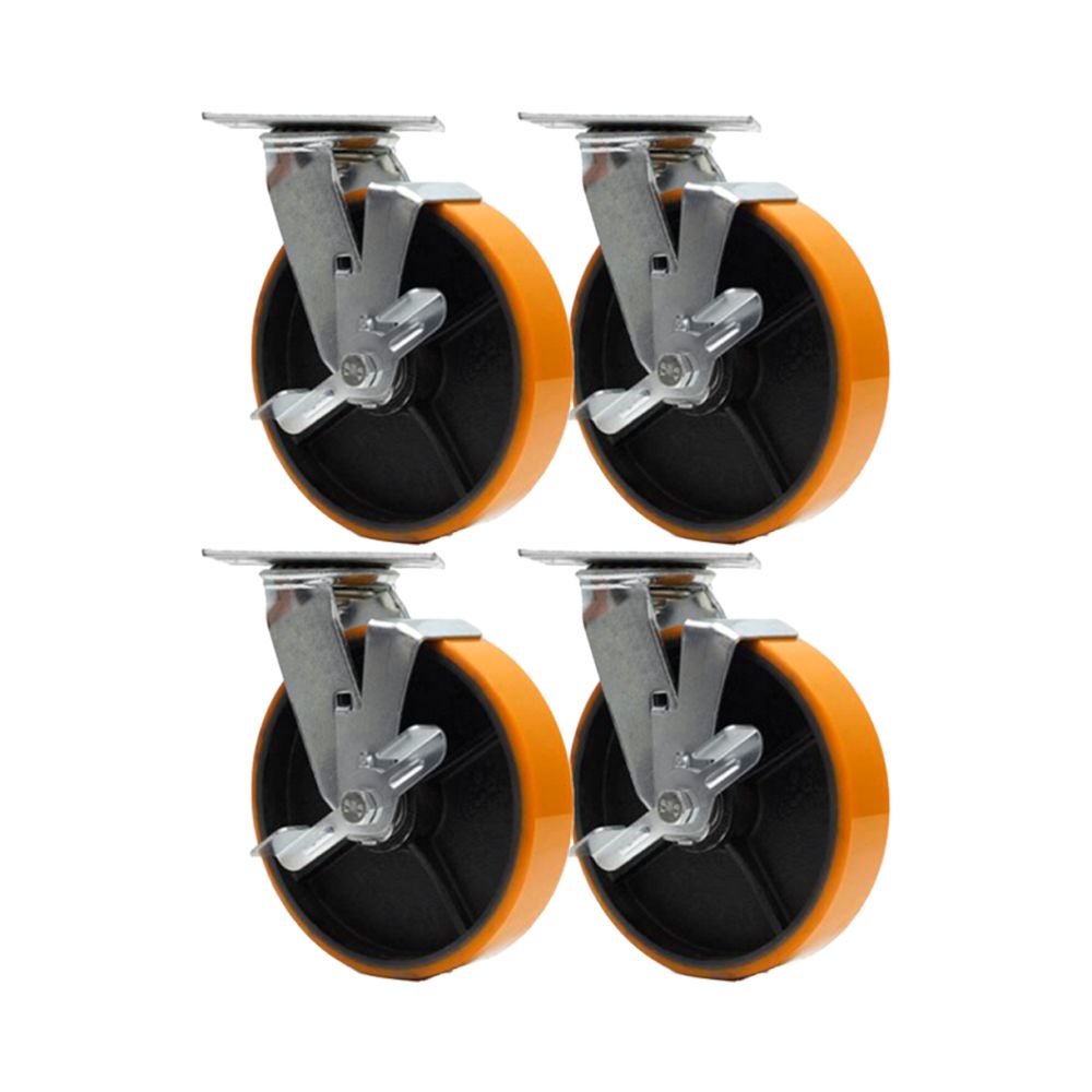 4 UNIDADES - RODA RODÍZIO POLIURETANO MOLDADO FERRO 8 POL GIRATÓRIO FREIO
