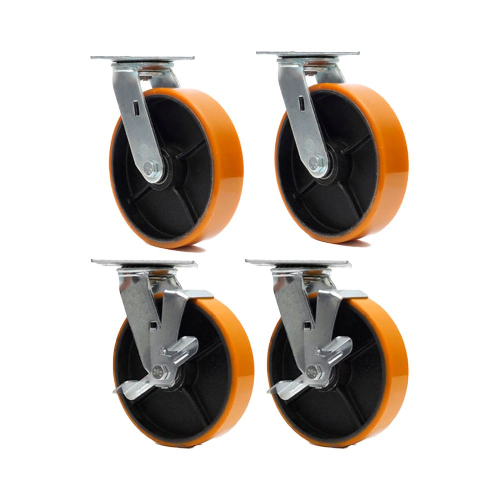 KIT 4 UN RODA RODÍZIO GIRATÓRIO FREIO POLIURETANO FERRO PU 8