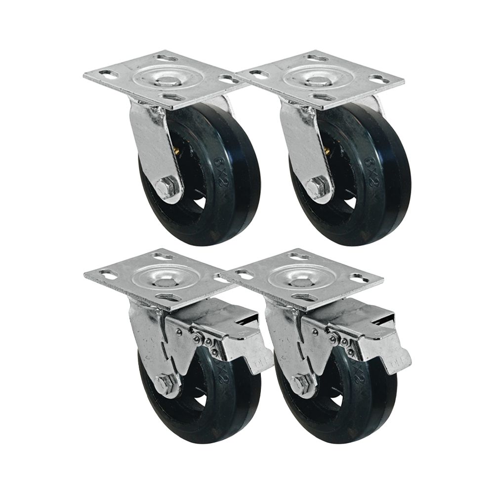 2 UNIDADES - RODA RODÍZIO BORRACHA MOLDADA 4 POL GIRATÓRIO FREIO 150KG