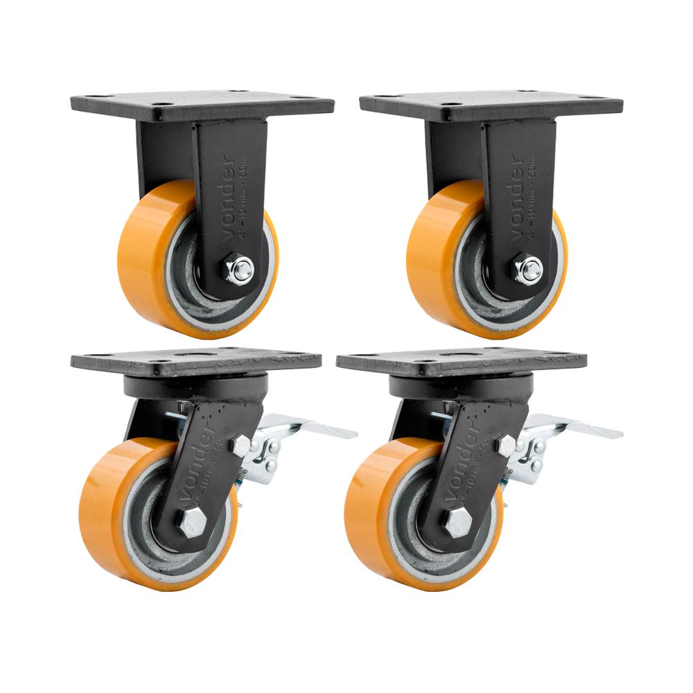 - 2 unidades Rodízio giratório industrial 5", de poliuretano e ferro fundido, com freio, VONDER