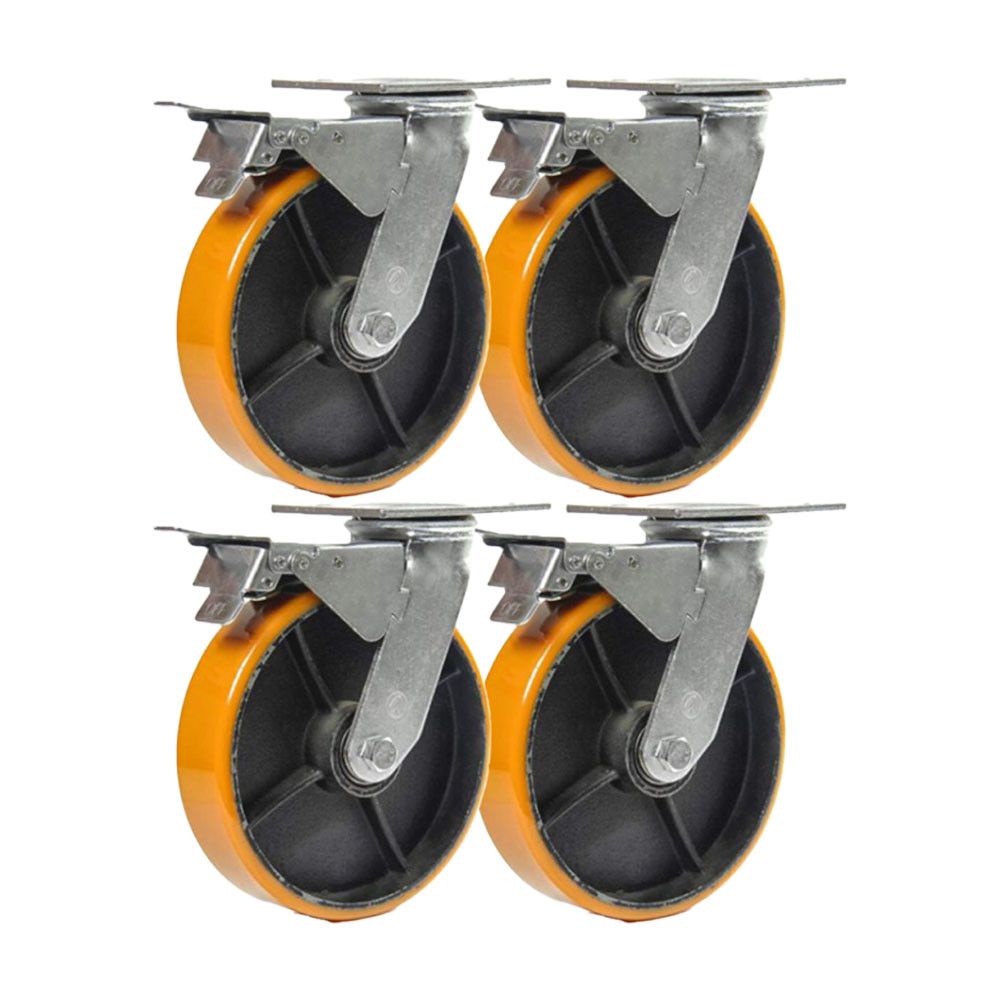 4 UNIDADES - RODA RODÍZIO POLIURETANO MOLDADO FERRO 8 POL GIRATÓRIO FREIO