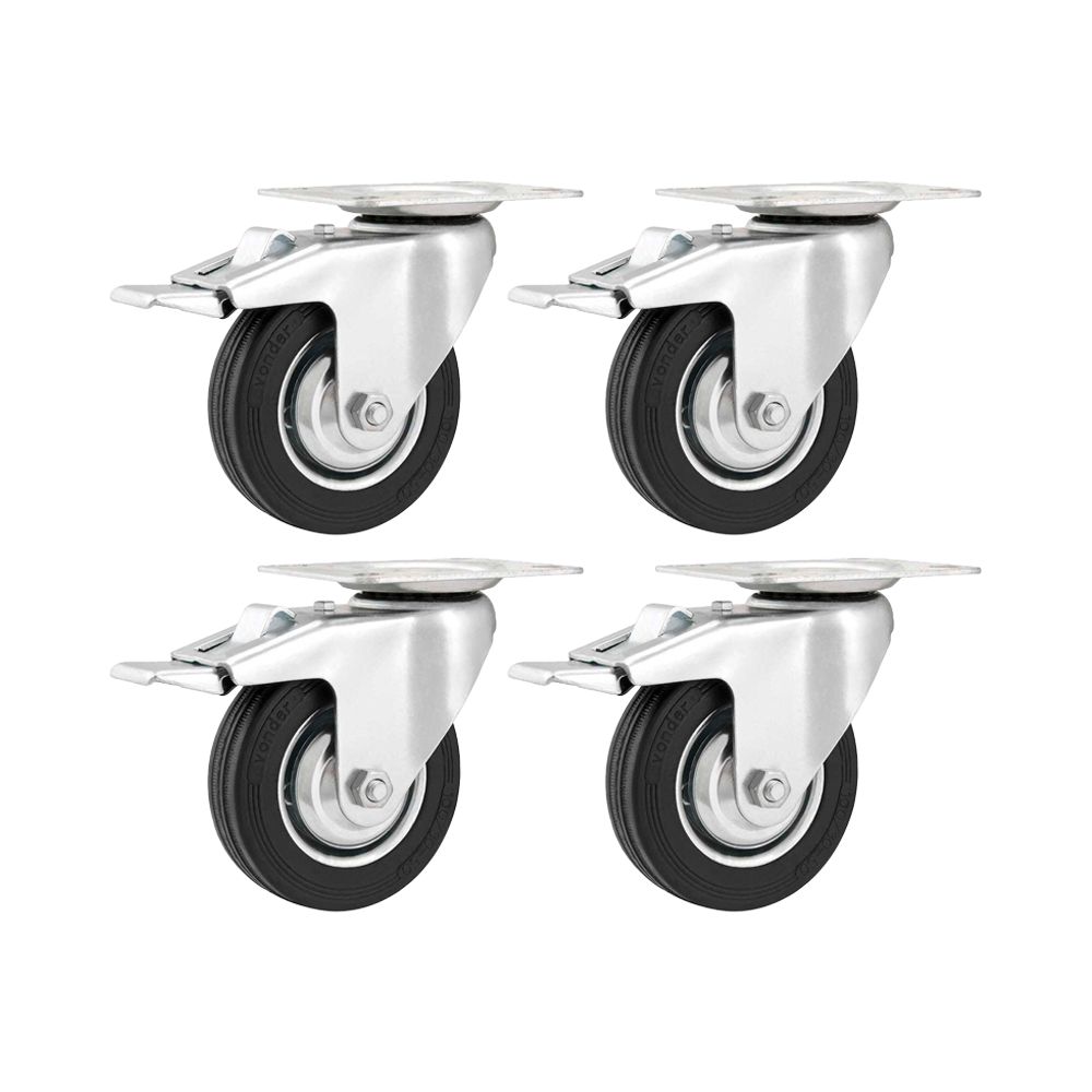 - 4 unidades Rodízio giratório leve 4", de borracha, preto, com freio, VONDER