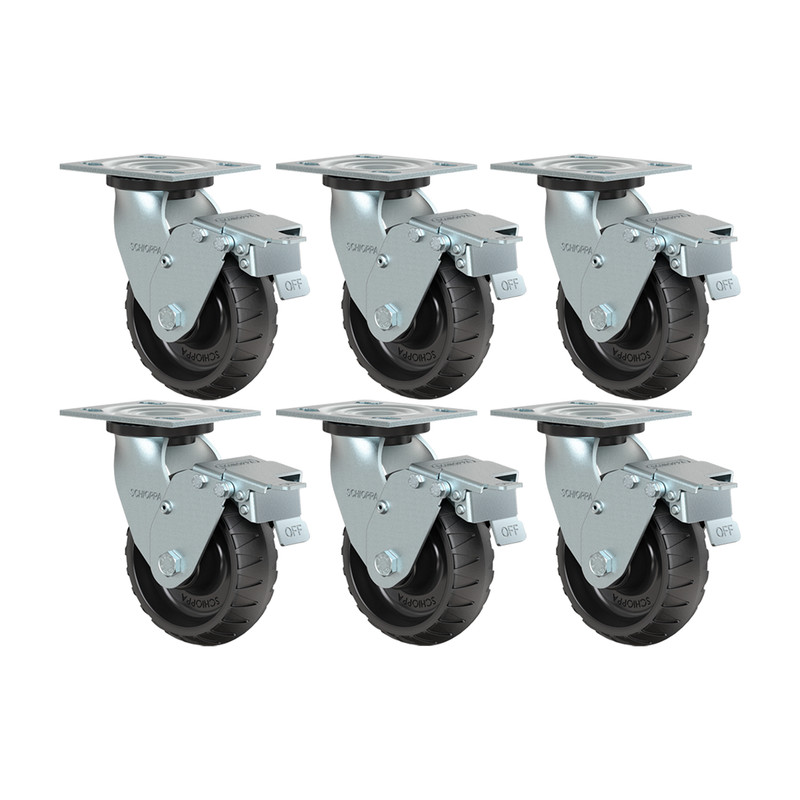 KIT6 RODÍZIO GIRATÓRIO FREIO BORRACHA ATÓXICA PRETA 62 250KG