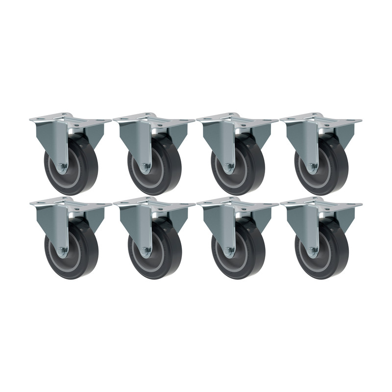 Roda BP: Produzida em composto termoplástico de PVC, com dureza de 85 Shore A (resistência de -10°C a +50°C). Proporciona uma rodagem suave e silenciosa, excelente proteção ao piso, alta resistência química, além de boa durabilidade contra desgaste e impactos, garantindo uma ótima relação custo-benefício.