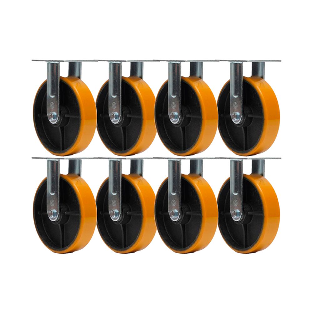 8 UNIDADES - RODA RODÍZIO POLIURETANO MOLDADO FERRO PU 8 POL FIXO 400KG