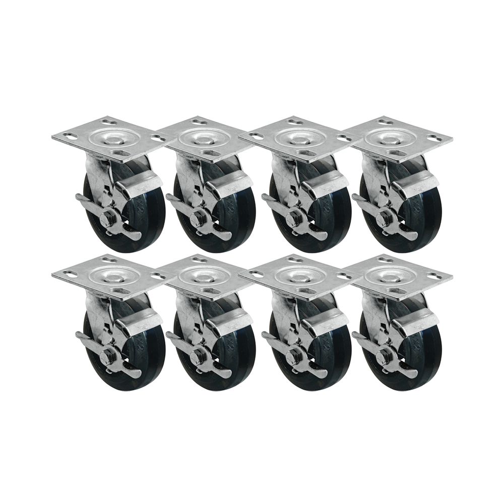 8 UNIDADES - RODA RODÍZIO BORRACHA MOLDADA 4 POL GIRATÓRIO FREIO 150KG