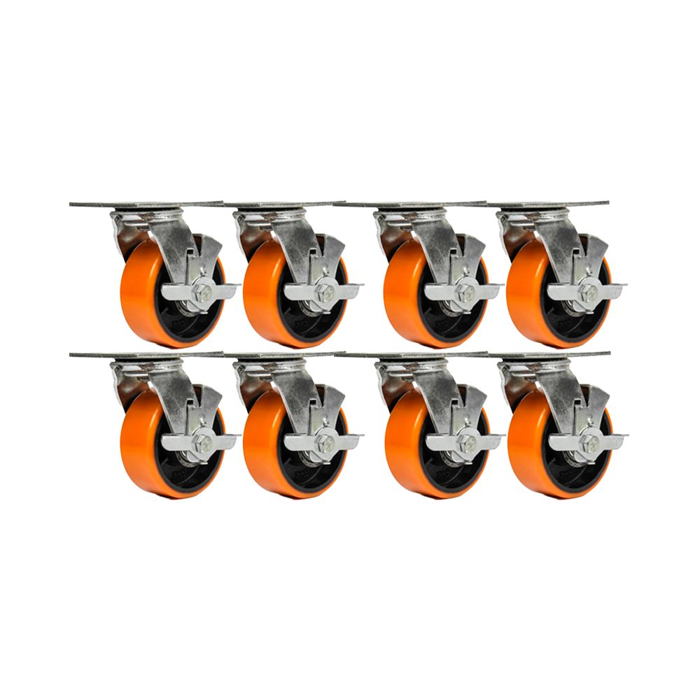 KIT 8 UN RODA RODÍZIO GIRATÓRIO FREIO POLIURETANO FERRO PU 6