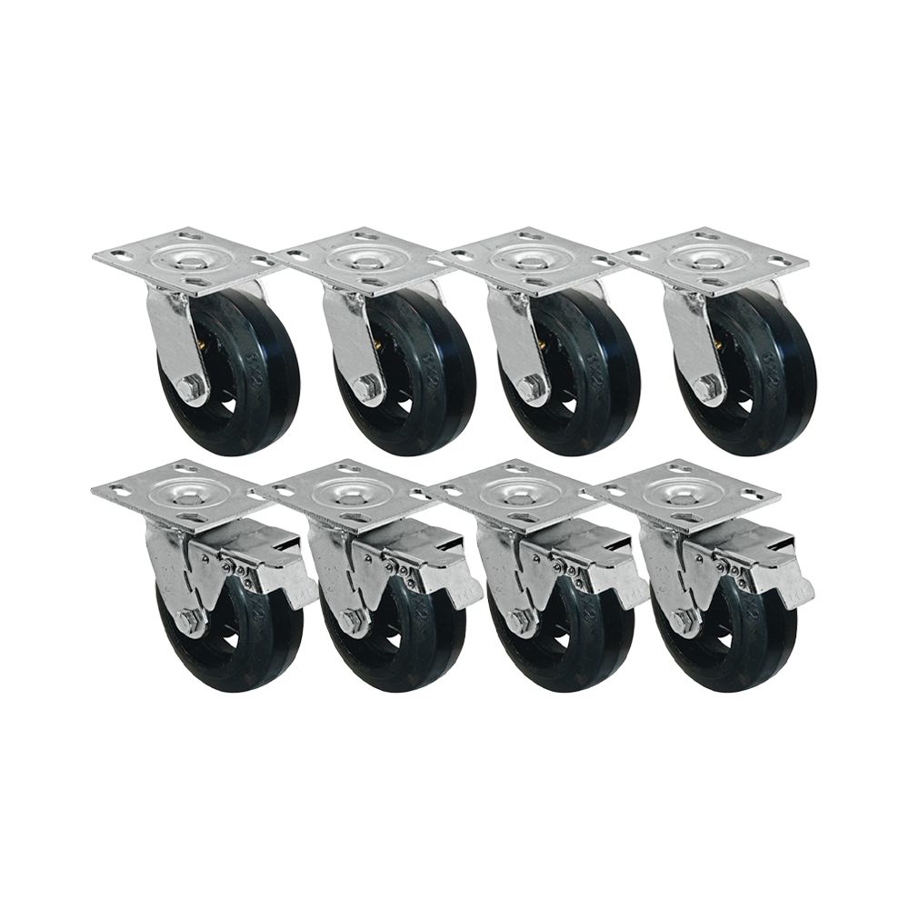 KIT 8 UN RODA RODÍZIO GIRATÓRIO FREIO TRAVA BORRACHA 4 POLEGADAS