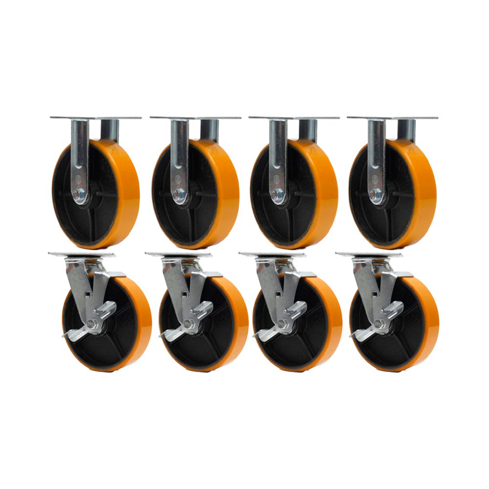 KIT 8 UN RODÍZIO FIXO GIRATÓRIO FREIO POLIURETANO FERRO PU 8