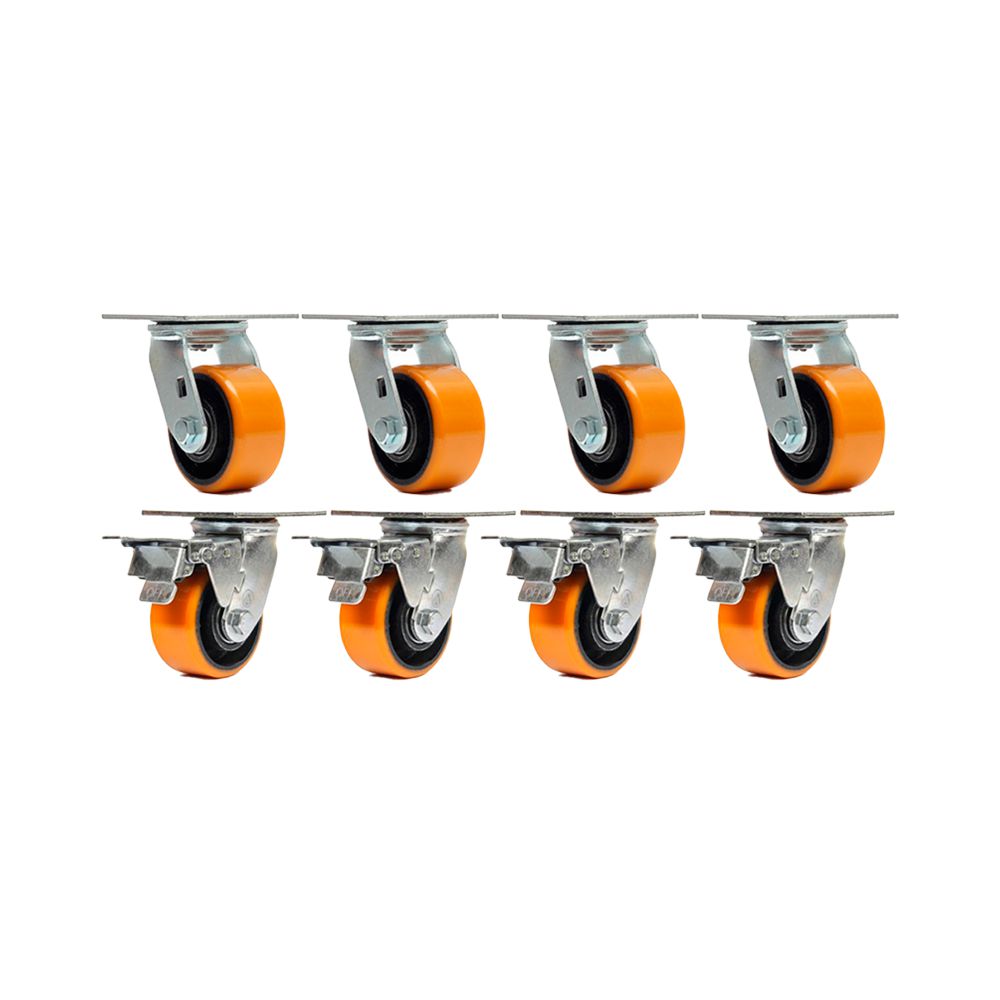 KIT 8 UN RODÍZIO GIRATÓRIO FREIO POLIURETANO FERRO PU 6"