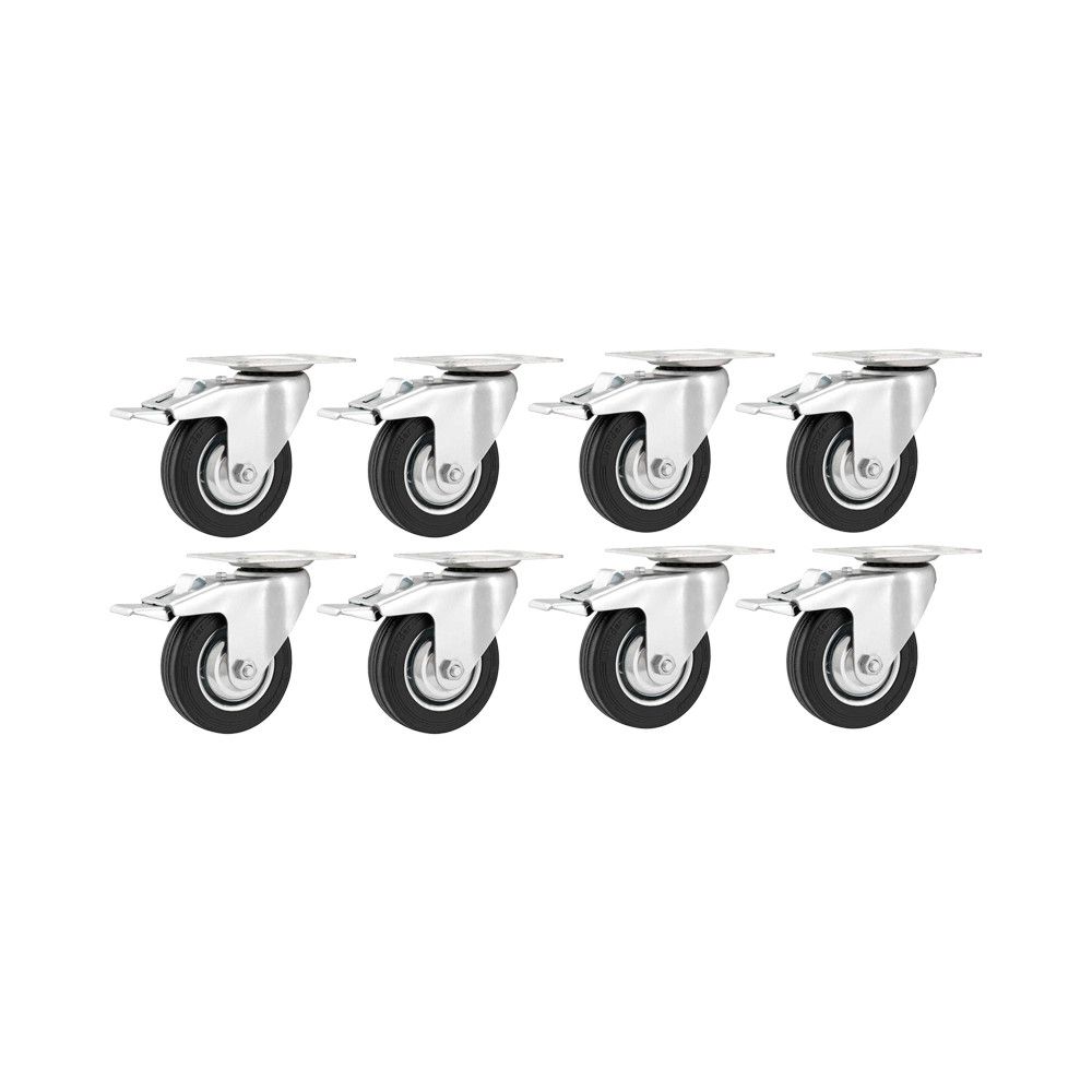 - 8 unidades Rodízio giratório leve 4", de borracha, preto, com freio, VONDER
