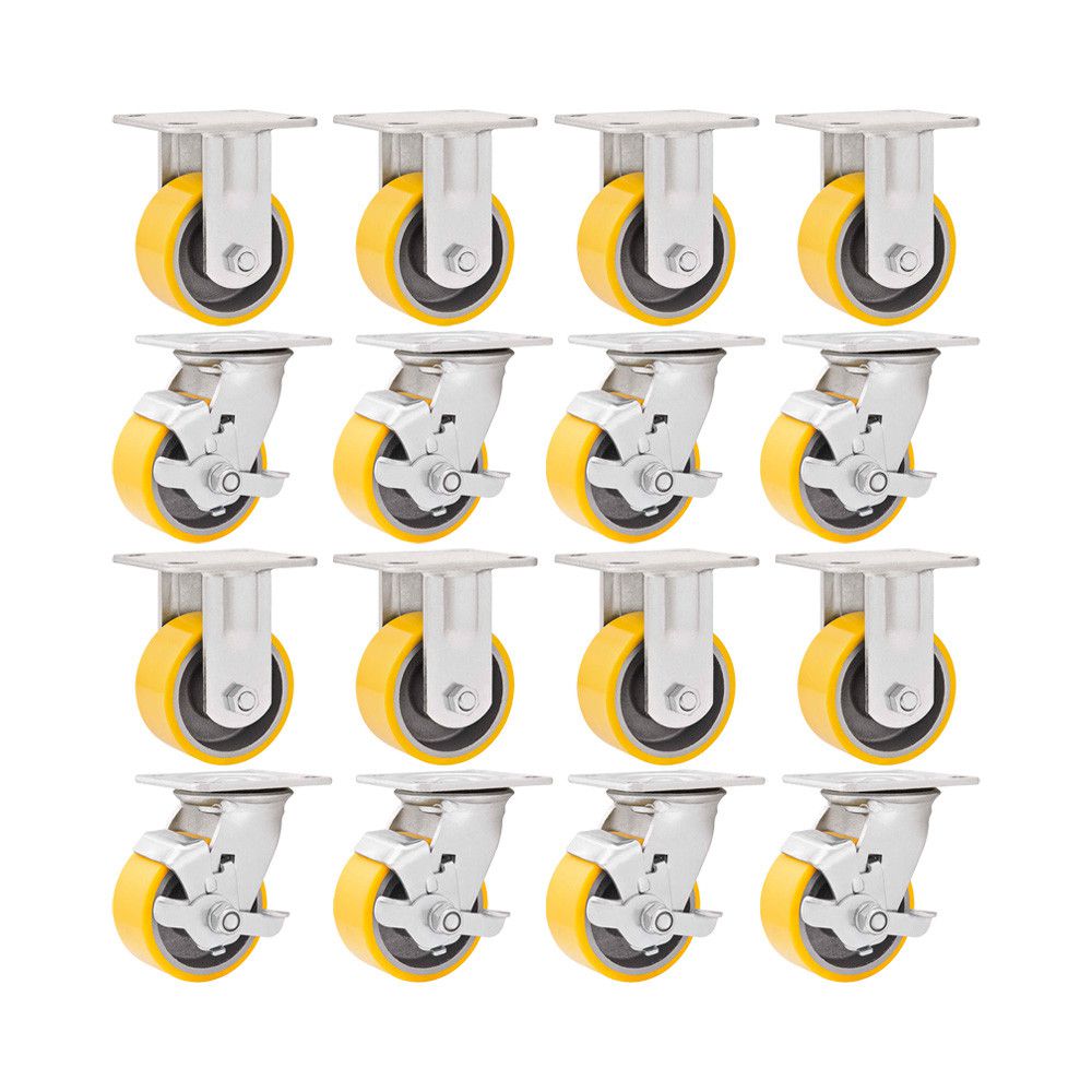 - 8 unidades Rodízio giratório 5", de poliuretano e ferro fundido, amarelo, com freio, VONDER