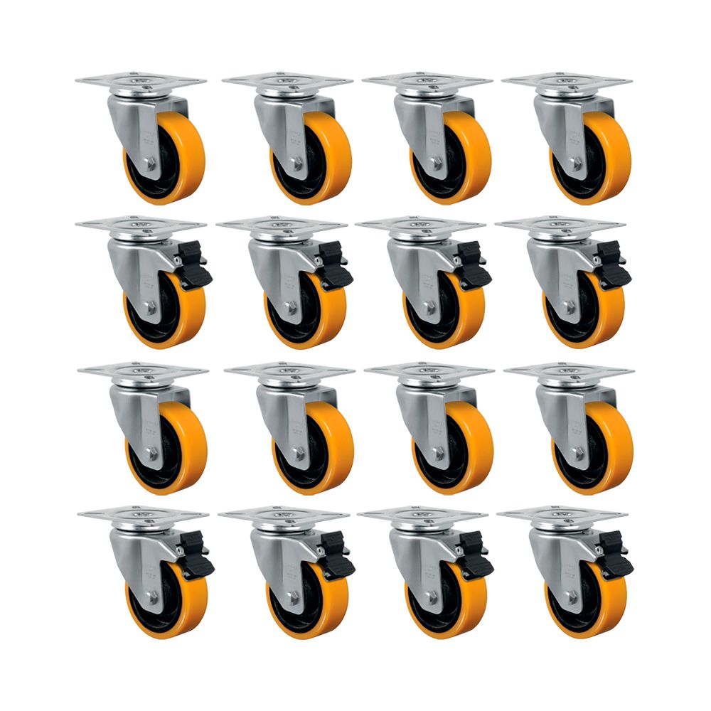 8 unidades - Roda Rodízio Giratório Freio 4" PU Moldado GL 414 PN G 300kg