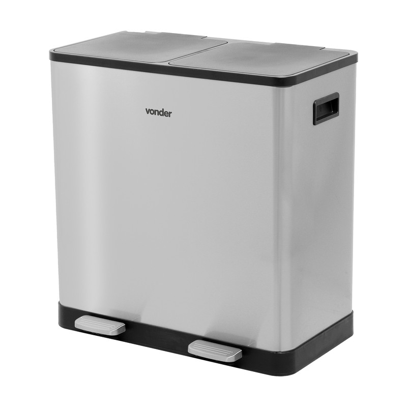 Duas Seções de Descarte: Com dois compartimentos internos de 30 litros cada, facilita a separação de resíduos.