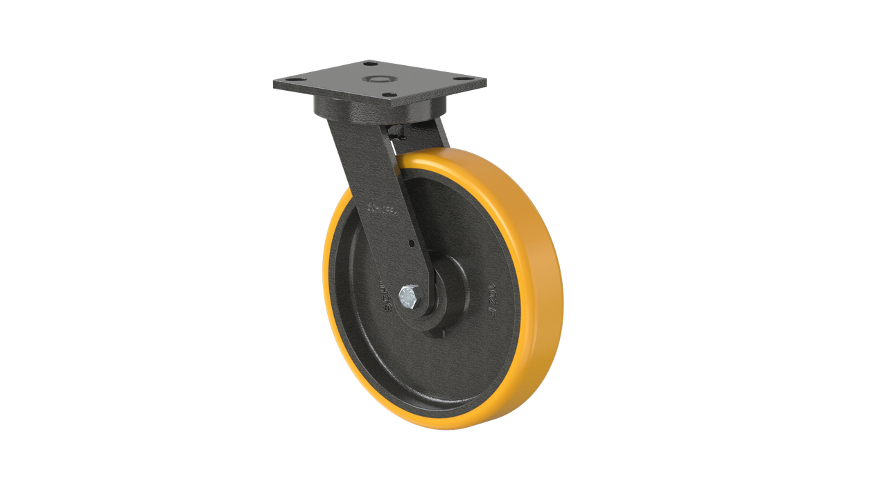 Produzida com revestimento em poliuretano moldado e núcleo em ferro fundido cinzento. Ideal para aplicações nos mais diversos tipos de superfícies e ambientes.